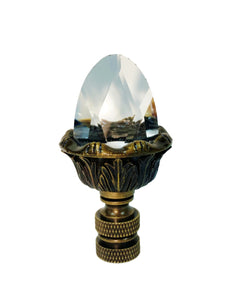 ACANTHUS ACORN w-Crystal Top Lamp Finial, Aged Brass Finish, Highly detailed metal casting
