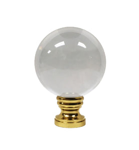 LARGE GLASS ORB-Lamp Finial-CLEAR, Solid Brass Base, 3-Finishes