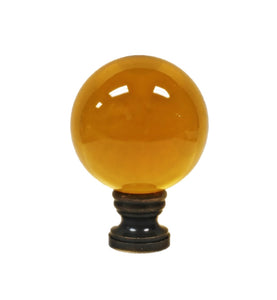 LARGE GLASS ORB-Lamp Finial-LITE AMBER, Solid Brass Base, 3-Finishes
