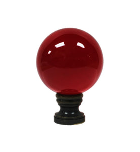 LARGE GLASS ORB-Lamp Finial-RED, Solid Brass Base, 3-Finishes